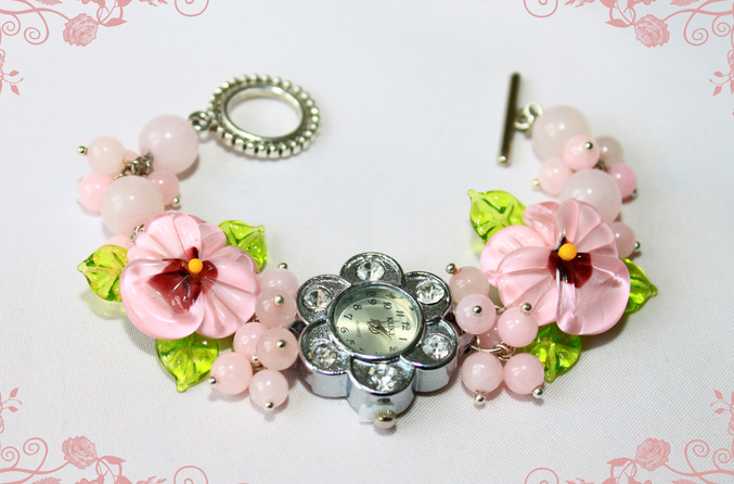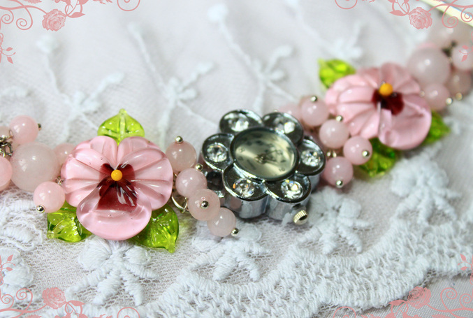 2. Часики "Аеютины глазки" с розовым опалом и лэмпворком. Очень нежные и в хорошем смысле девчачьи.
