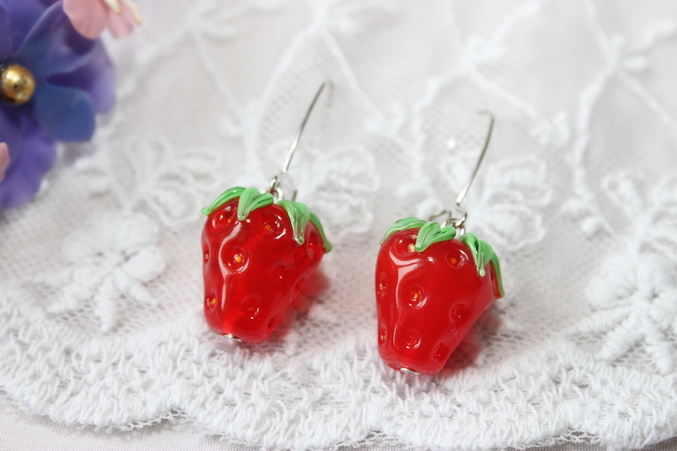 4. Серьги "Клубника" со швензой сродиевым покрытием, ваши ушки не будут болеть)