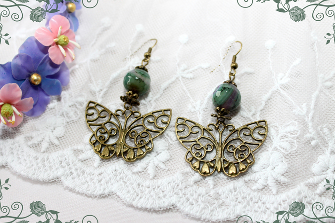 6. Серьги "Эффект бабочки" бронзовая металлофурнитура, агат