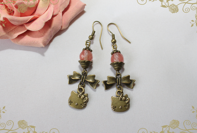 7. Серьги "Kitty" с бронзовой металлофурнитурой и кварцем-черри