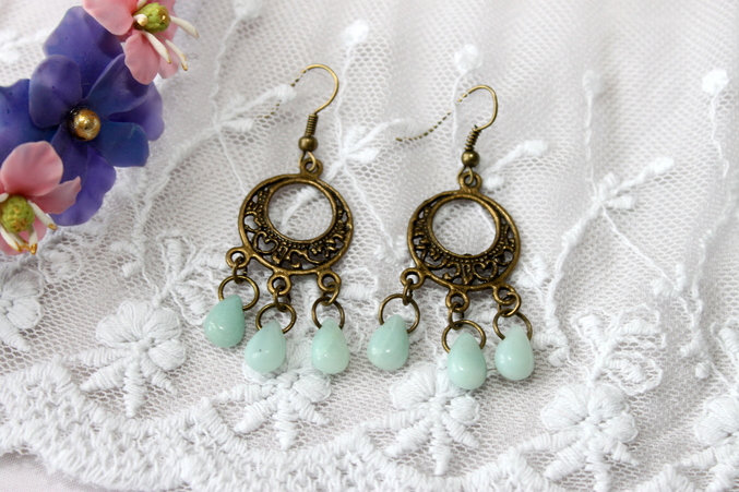 11. Серьги " Капельки моря" Бронзовая металлофурнитура, амазонит