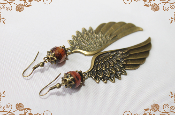 9. Серьги "Крылья" Бронзовая металлофурнитура, агат. Длина со швензой 9см Проданы
