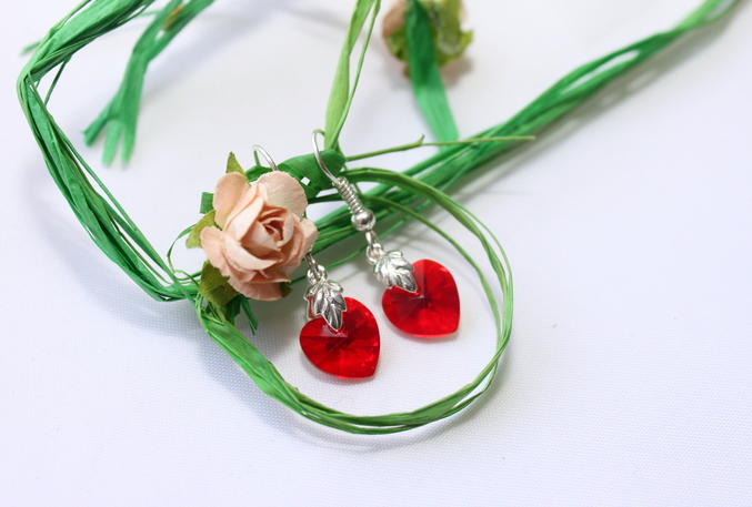 7. Серьги "Красные сердечки". Фурнитура под серебро,стекло