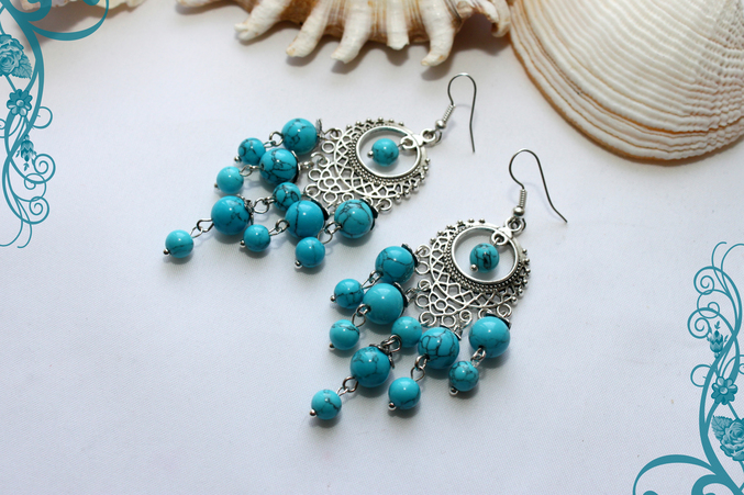 10. Серьги "Бриз" Фурнитура под серебро, бирюза Проданы