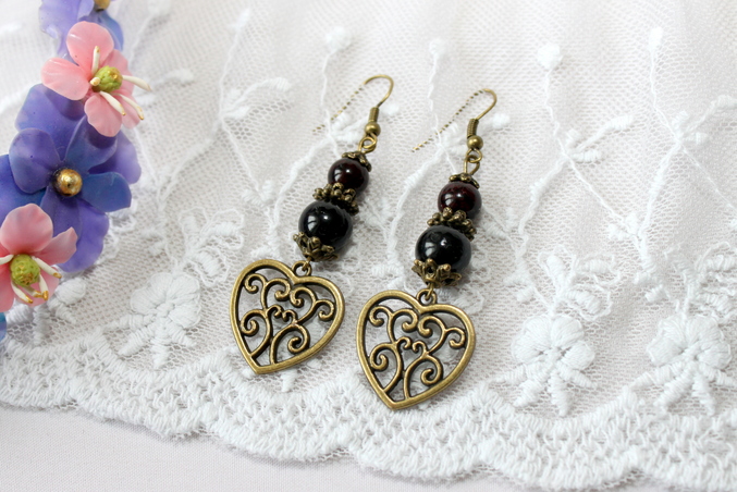 4. Серьги "С любовью" Бронзовая металлофурнитура, агат, гранат