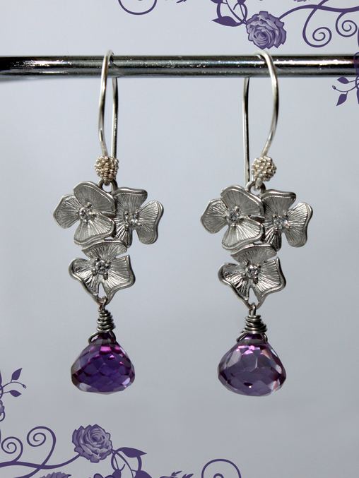 14. Серьги " Emily" Швензы-серебро 925, фурнитура с родиевым покрытием, александрит (корунды)