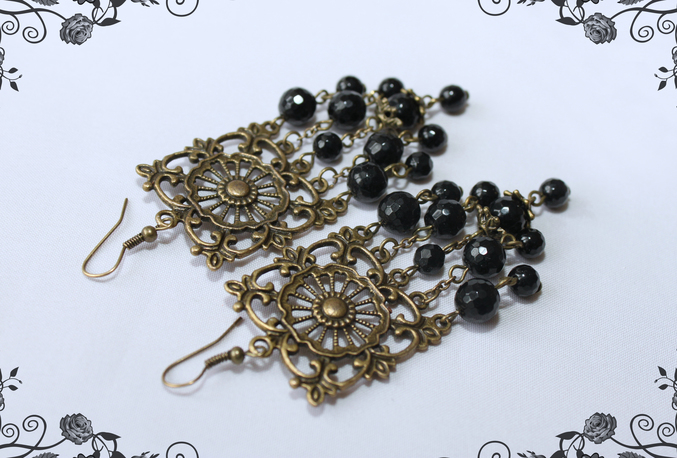 5. Серьги "Цвет ночи" Бронзовая металлофурнитура, агаты. Размер 9,5см ПРОДАНЫ