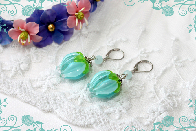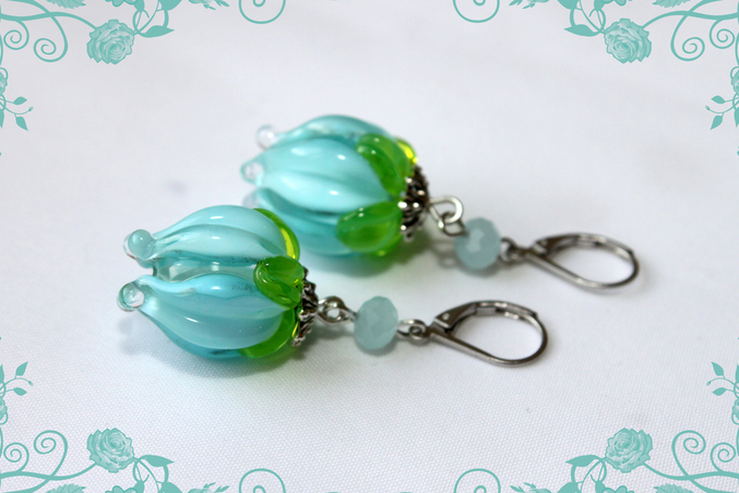 2. Серьги "Голубые бутоны" Авторский лэмпворк, "цирконы", швензы-родиевое покрытие по латуни, французский замок Проданы