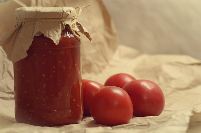И томатом. Моё детство пахнет свежесвареным томатом. Это необыкновенный, немного терпкий, густой запах от которого почему то сразу хочется кушать.