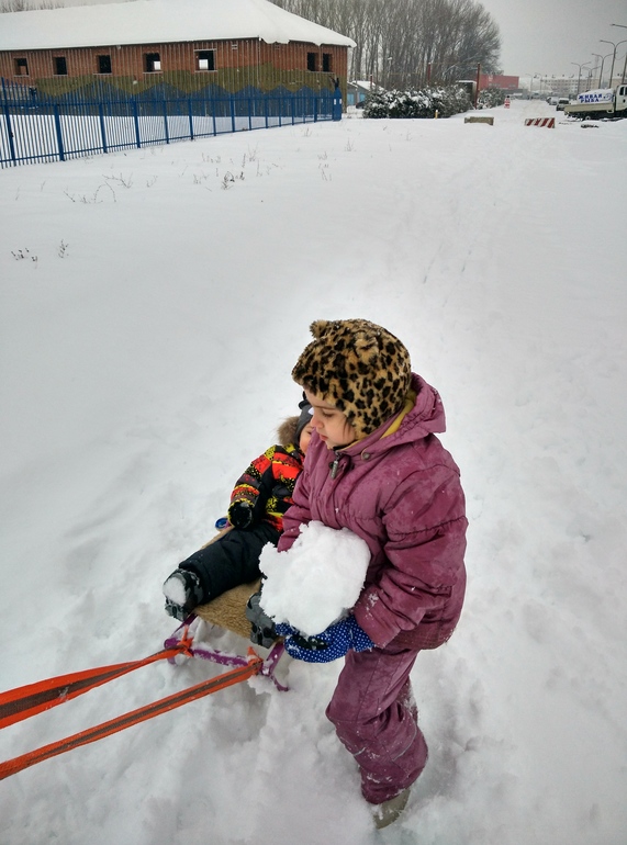 И мы пользуясь случаем отправились лепить снеговика)