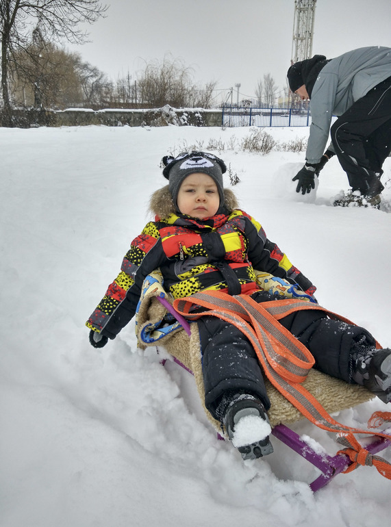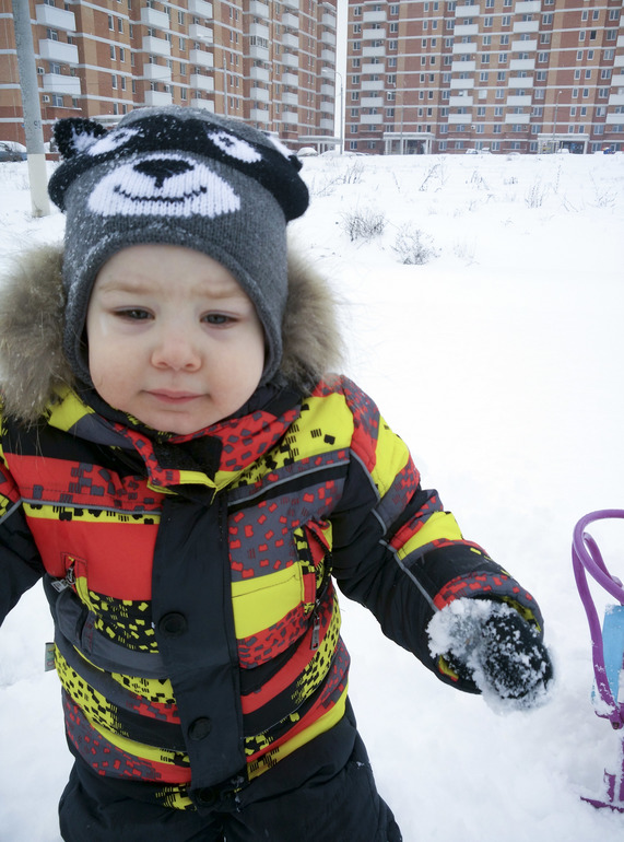 Серёжа как и вчера сначала был не очень доволен всеми этими снежными прогулками.
