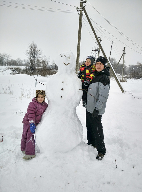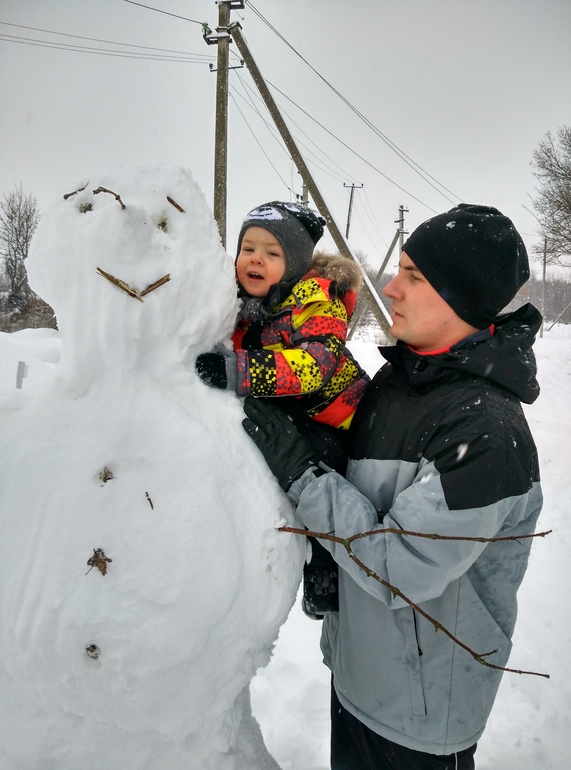 Снеговик получился большой! Выше папы!) Назвали Олафом) я и не сомневалась...))