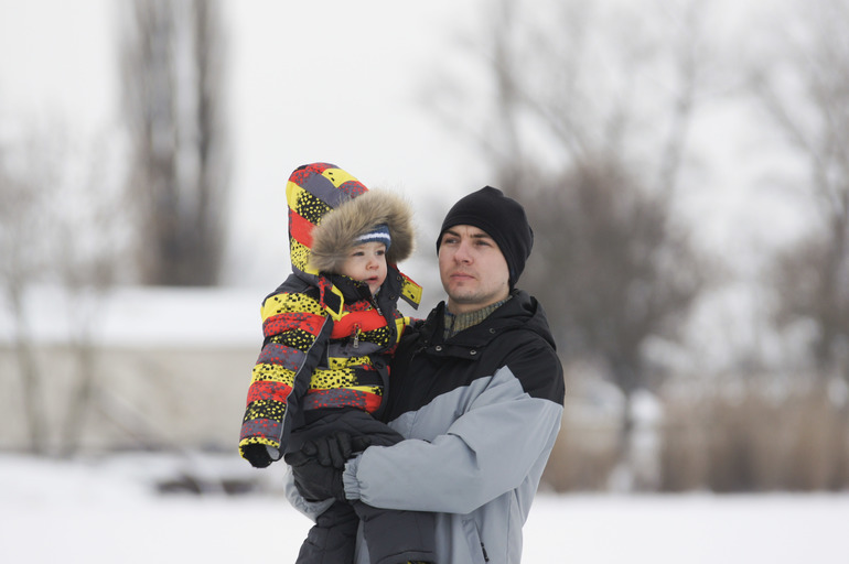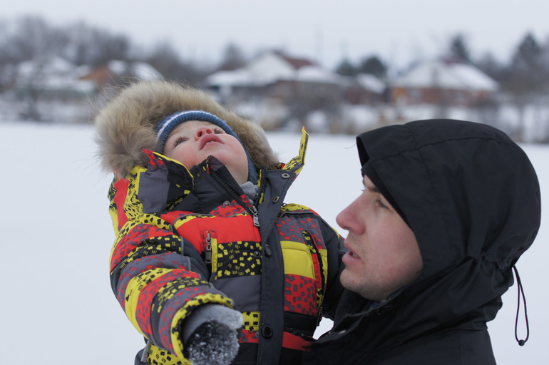 Сергей Сергеевич первые минут десять категорически не желал слезать с рук. Снег его совершенно не впечатлил, и он только и делал что просился обратно в машину.