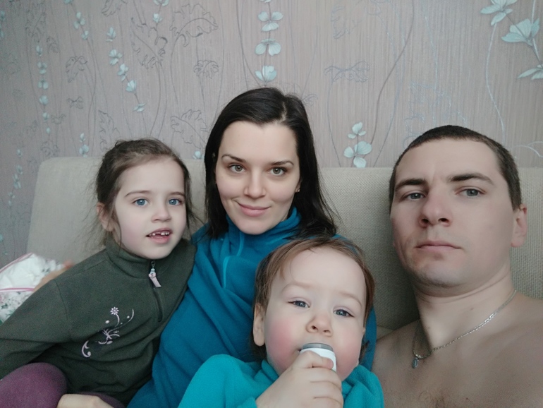 По приходу домой все срочно уселись на диван, чтобы сделать семейное фото с красными щёчками)) Папа уже даже успел раздеться и немного не вписывается в нашу компанию "С мороза")
