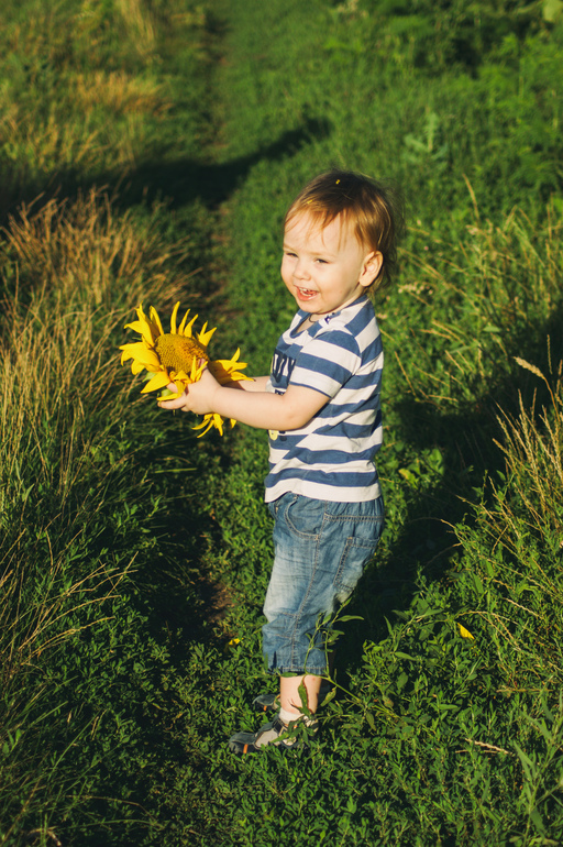А эта фотография прям как для журнала "Кубань - житница России!" Тут вам и подсолнухи, и пшеница, и толстощекий карапуз, всем своим видом показывающий, как хорошо ему живется на юге страны)