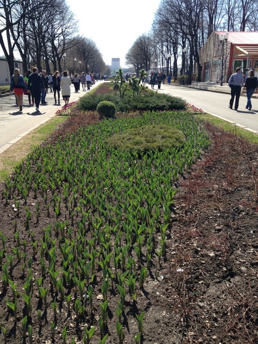 А теперь все по-порядку. Первое, что порадовало глаз - очень миленькие клумбы с цветами по дороге непосредственно в парк: