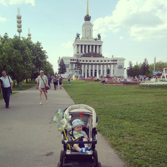 Сегодня первый раз выползли на ВВЦ, невероятно устала, в одну сторону 1,5 часа и в другую столько же, а деть довольный))))