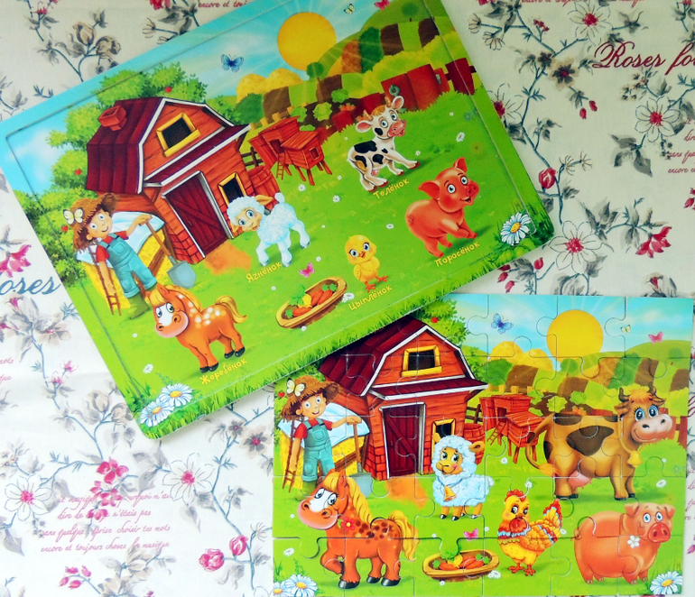 Еще один пазл на 24 детали купили на рынке, производителя не знаю, к сожалению, материал - фанера. Пазл с подложкой, тоже был один из любимчиков.