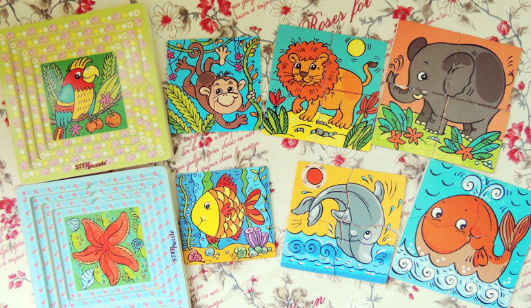 Эти деревянные пазлы необыкновенно хороши. Стеша начала их сама собирать где-то в 1,9. Когда для нее это стало совсем просто, я перемешивала все детальки от всех животных. Качество очень прочное, смело можно рекомендовать в качестве первых пазлов.