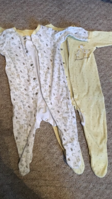 9. Слипики Асда. Использовали несколько раз и резко переросли, на рост 68-70 см. Написано 6-9 мес за комплект 300 руб