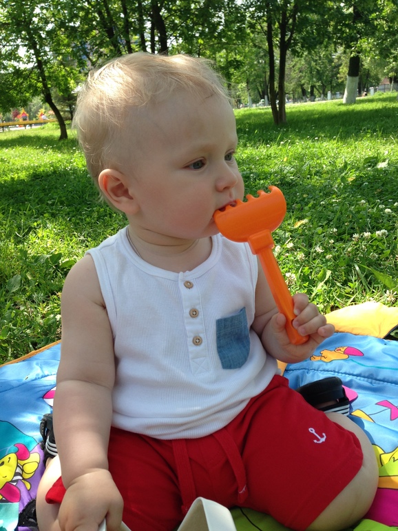 Почти в 11 месяцев вылез зуб внизу, теперь у нас их 7! Но чувствую лезет ещё один, капризничает как-то. А ещё мы его приучили спать с нами, что есть не гуд! 10 месяцев держались, а тут... Как раз , когда заболел. Я его конечно перекладываю в кроватку, но под утро он всегда оказывается опять в нашей.