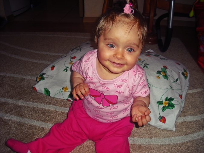 Поздравляю красотку)))Вот и годик скоро)))Умничка,вот и села))Скоро бегать будет)))