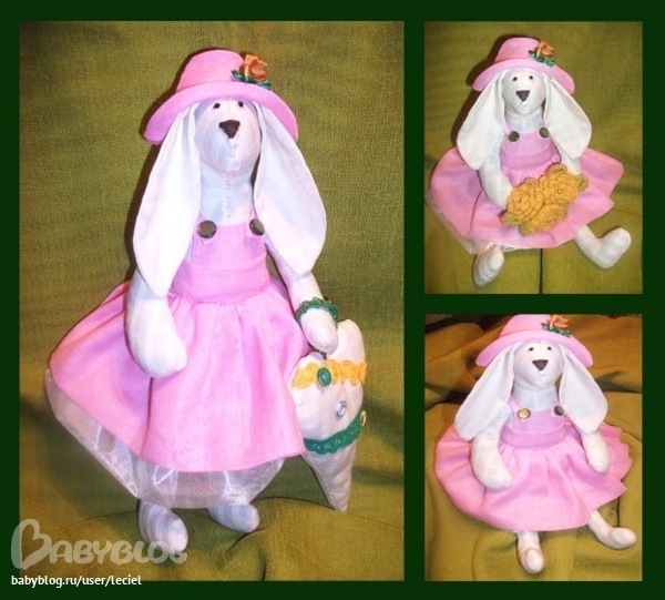Зайка Феона была моей первой тильдо-игрушкой. Швейной машинки тогда еще не было, но руки дико чесались сшить тильдочку. Впрочем, тогда и тканей подходящих не было, но желание было огромное :) И вот так - из подручных материалов, полностью вручную появилась Феоночка :) Кривенько, косенько, но выполнена с таким желанием и любовью :)