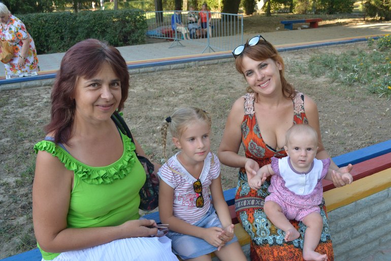 а вот фото со Дня Города. Лисичке тут правда еще 5 мес. но нравится мне эта фотография. с левой стороны моя мама, по серединке старшая доченька и я с Лесиком