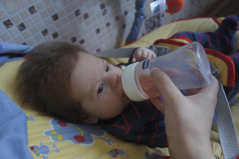 Андрюша не любитель совсем не любитель бутылочек, но лекарство из нее все-таки выпил и возмущался не сильно. А молоко осталось про запас в морозилке.