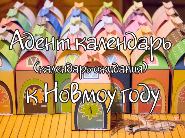 Адвент-календарь с бумажными домиками и новогодними милашками