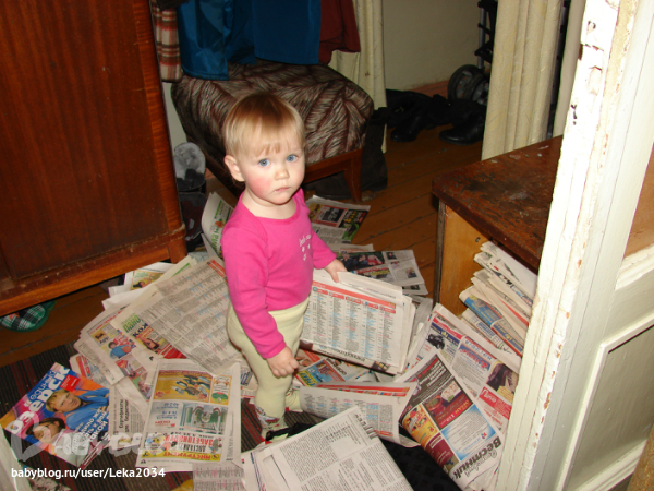 Погром у бабушки, бабушка наша в шоке, сказала нам, что мы растим бандитку. Завязала от Ляны все шкафы, отбирала мобильники и пульты, говорит, что это мы её так плохо воспитываем, что она всё разбрасывает. Ну вот такая у нас младшенькая)))совсем другая, непохожая на старшую. Такой ураганный темперамент)))
