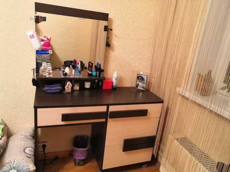 Туалетный столик. Продаю в связи с переездом. В отличном состоянии. Удобный, вместительный. Большое зеркало, 4 выдвижных ящика. Фабрика "Столплит". Новый стоит 8000 р. Продаю за 2500 р.