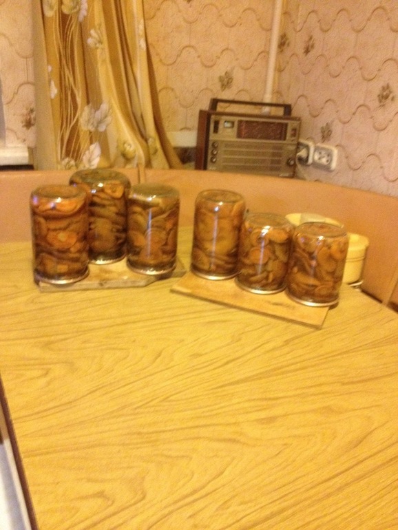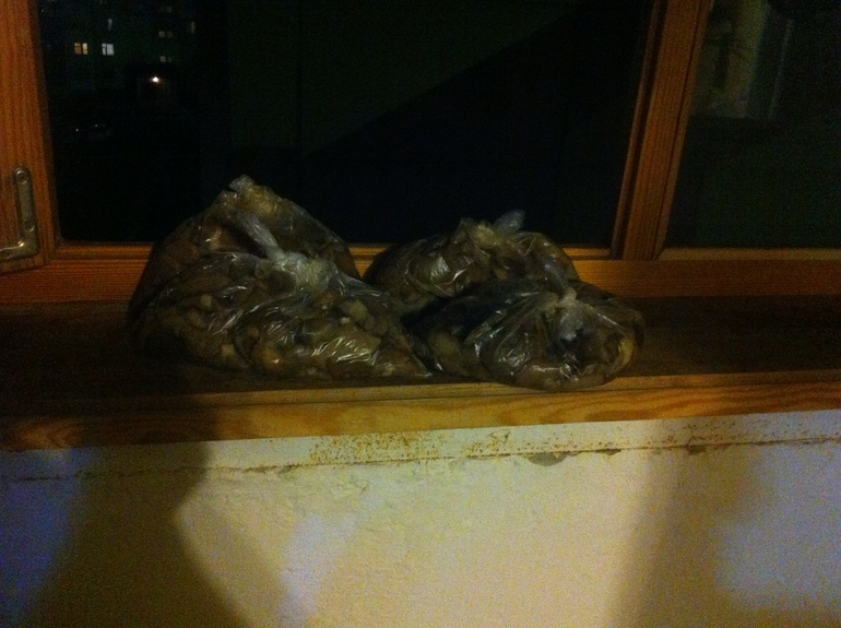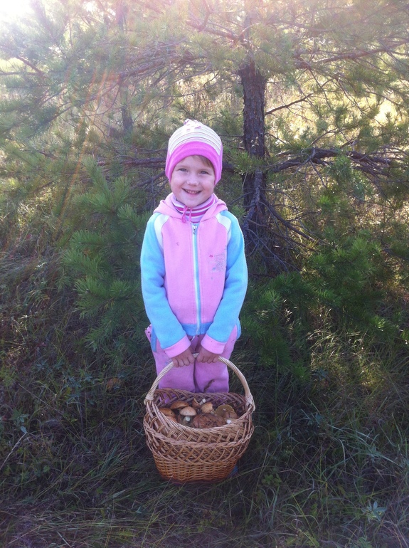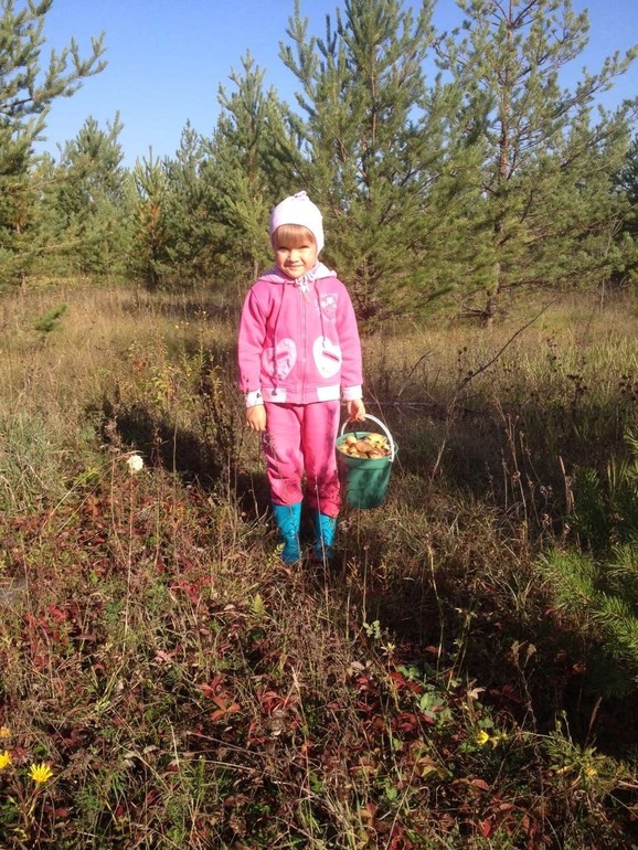 Оделись потеплее, так как выехали рано, в 6-30. Ездили в Теренгульский район, село Тумкино. Набрали маслят, рыжиков, подберезовиков,а дедушка даже белые нашел.