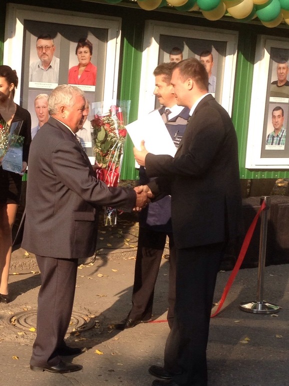 В честь надвигающегося дня машиностроителя нашего папу вчера наградили почетной грамотой и фотографию повесили на доску почета.
