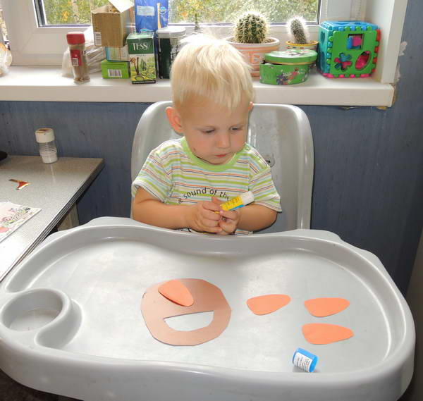 Морковку в корзинку клеили с большим энтузиазмом. Отлично пошло.