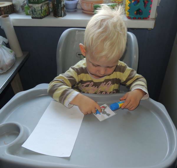 На самом деле это уже вторая попытка начать этот день. В первый раз человечек начал с того, что ободрал с двери картинки, приготовленные мамой. Ну и был наказан отлучением от занятий в этот день :)