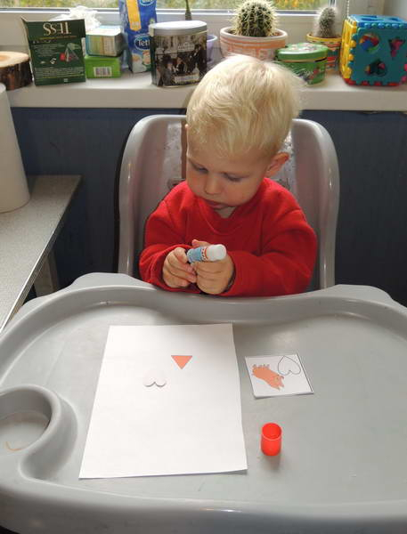 Подбирать фигуры к животным и клеить надоело очень быстро. Сделали только одну. Будем продолжать в следующие дни.