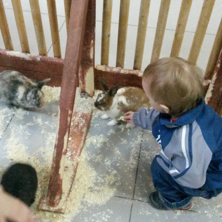 Ездили с детками в контактный зоопарк.Всем очень понравилось.Артёму очень понравились кролики)))