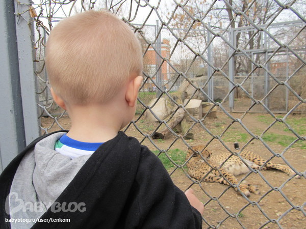 Дальше увидели гепарда. Андрюха внял увещеваниям "смотри, большая киса!" и соизволил уделить кисе минутку своего внимания