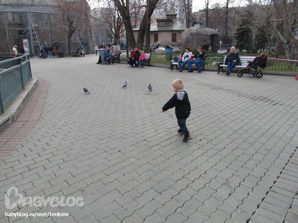 Дальше мы выбрались на относительно безлюдное место, и (о, счастье!), Андрюха увидел голубей и начал их гонять. Блин, вот стоило идти в зоопарк, чтобы погонять гулюшек, которых на каждой помойке навалом!