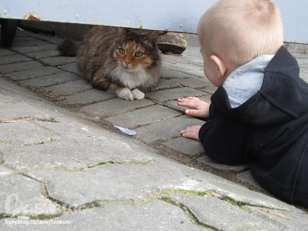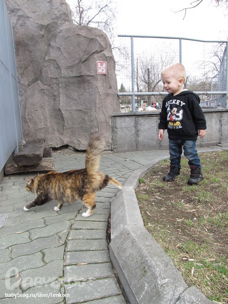 Так он пролежал минут десять, радостно болтал с кошкой и громко-громко хохотал, прям так по-взрослому, что мне как-то не по себе стало))) Вокруг собралась толпа народу, с камерами и вспышками, по популярности мы уже могли соперничать с жирафом)