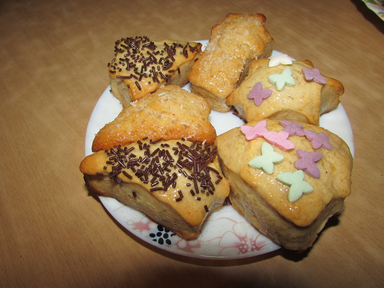 Дети выпросили. Медовые с цедрой лимона, накидала туда корицы, имбиря и кордамона. Обсыпала кокосом, обсыпкой. И налупилась....Вкусно. Придется на беговую встать. Телек чистый. Не отвертеться мне).