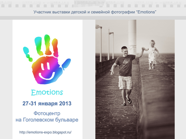 Год заканчивается и начинается очень оптимистично и празднично! Моя фотография будет участвовать в Фотовыставке EMOTIONS с 27 по 31 января в Фотоцентре на Гоголевском бульваре.
