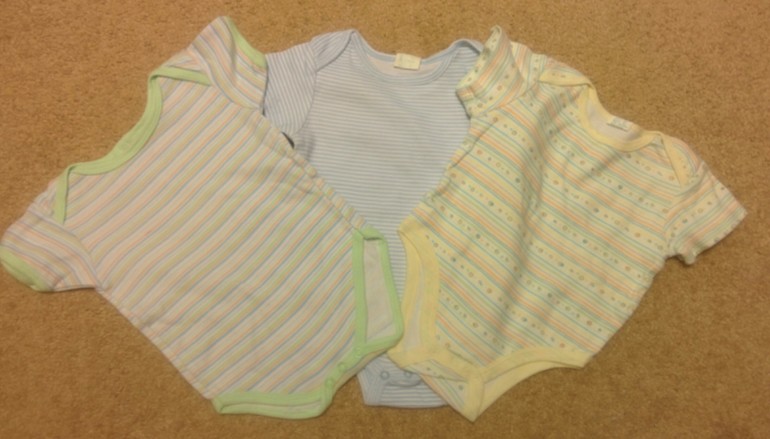 Боди Биг оши 3шт за 200р. Бу. Возраст написан разный 6-9 и 9-12, но реально они одинаковые. И картерс на новорожденного в два раза уже, но по длине такой же.