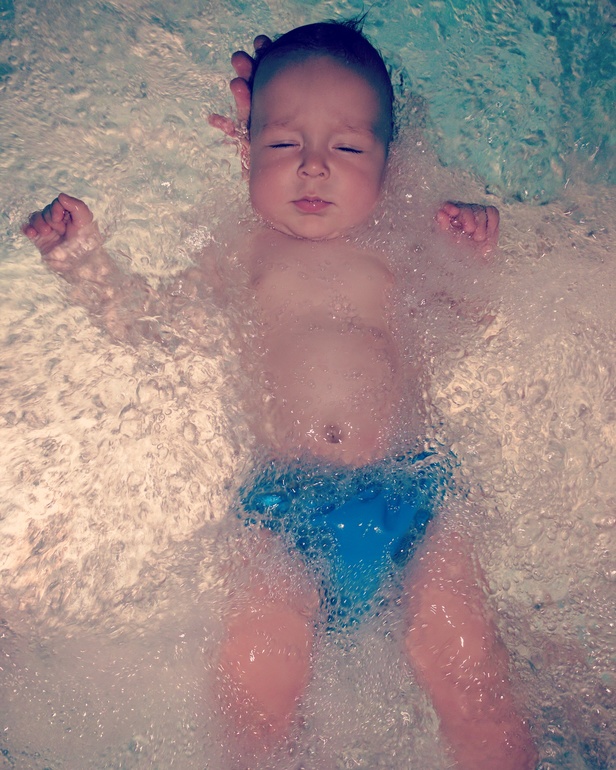 Я все чаще забиваю на массаж и фитбол. Да и в Москве мы бываем редко. Зато начали ходить в бассейн в Твери. В ванной плавать вообще не получается, а вот в бассейне все очень хорошо. Ныряет, плавает и на спине, и на животе.