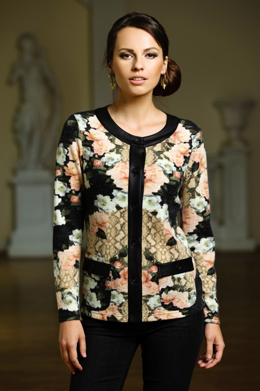 Оригинальная блузка с однотонной черной спинкой арт. 3576 - 40,42,44,46,48 - 1750 руб.+%