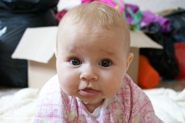 Вот так вот, пару недель ничего особо нового не было, а тут разом столько! И до кучи перевернулась сегодня в шезлонге, лежала-лежала (я была на кухне), слышу орет, прихожу, а она почти на животе, почти вывалилась - мдааа, пришла пора пристегивать, а то так выпрыгнет скоро....