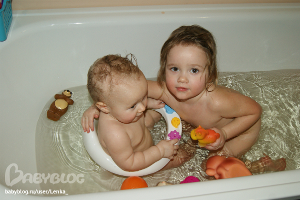 А сегодня мы все же купили стульчик для купания. Восторгу не было предела! Теперь они с Лиской на равных!