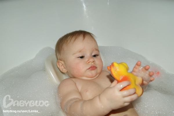 До сегодняшнего дня купалась Златочка как малышка....не поверите...в горке для купания! И ведь нормально купалась, не пыталась особо в ней садиться, лежала так на расслабоне, игрухами занималась))) Видимо, и так хорошо ей было)))