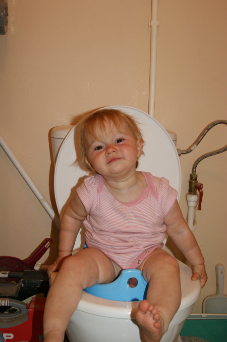 Злата так и продолжала носиться по дому, писая исключительно в трусы. И вот недели три назад меня осенило! Я усадила ее на унитаз! Вскочить с него не так-то просто, да и время в туалете можно провести очень весело, хватая что-нибудь и бросая на кафель))) А в последние дни Злата прямо рвется в туалет, если чувствует, что ей "приспичило", посидит, покряхтит. Молодец, соображает! Из последних побед: вчера в сухих трусиках проходила с 13 дня(перед обедом надела) и до самой вечерней гулянки, когда я ее в памперс уже переодела!